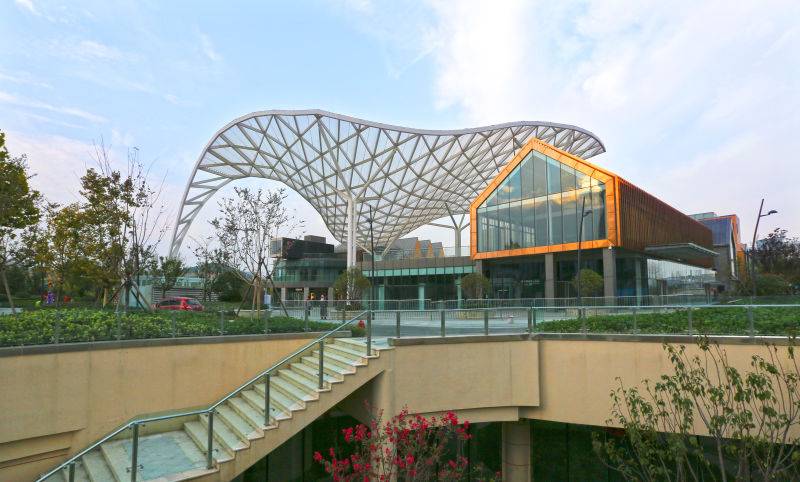 青岛嘉年华渔人码头项目共有ABC三个区独立膜结构壳顶组成,共计119个单层ETFE膜单元,超过500根钢索。索与单层ETFE膜的配合,让三个膜结构壳顶看起来像干净透明。