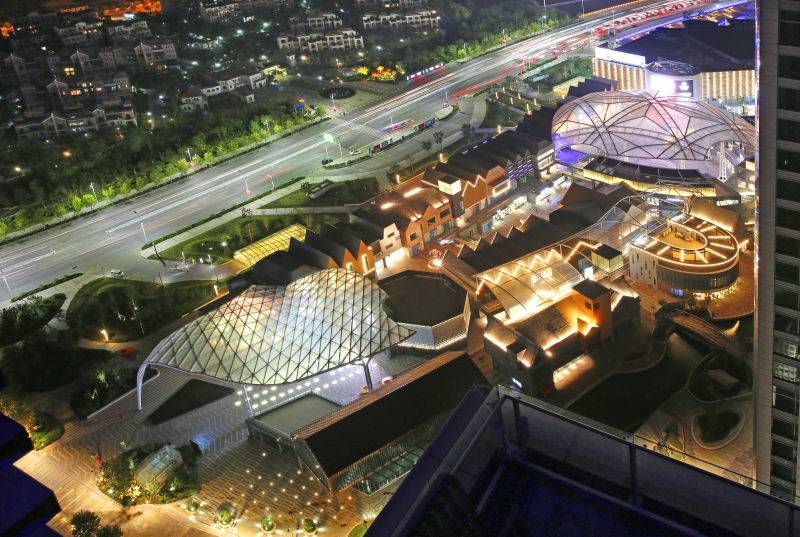 海上嘉年华项目主要包括三大部分,即以水上游乐为主题的“海上嘉年华”、以狂欢节庆为主题的“渔人码头步行商业街”、高尚滨海国际社区“海湾豪庭”。建筑设计融合了膜结构并实现每个膜结构单体风格各异,实现遮阳、遮雨功能的基础上将裙楼间以膜结构形式连接使商业街融为一个整体。