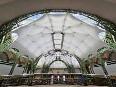 在2024年巴黎奥运会期间,为了准备举办击剑和跆拳道比赛,大皇宫进行了由夏蒂永建筑事务所(Chatillon Architectes)牵头的重大修复。这次修复旨在改善公共性,增加自然采光,并将宫殿与城市环境重新连接起来。为了控制比赛期间的室内照明和内部环境,部分区域被PVC等材料遮盖。PVC膜结构柔软轻盈,能够避免钢构带来额外负担,其造型优雅、线条流畅,又与大皇宫整体相得益彰。整个项目膜面积约17000平米,设计用时7个月,安装7周,拆卸7天。